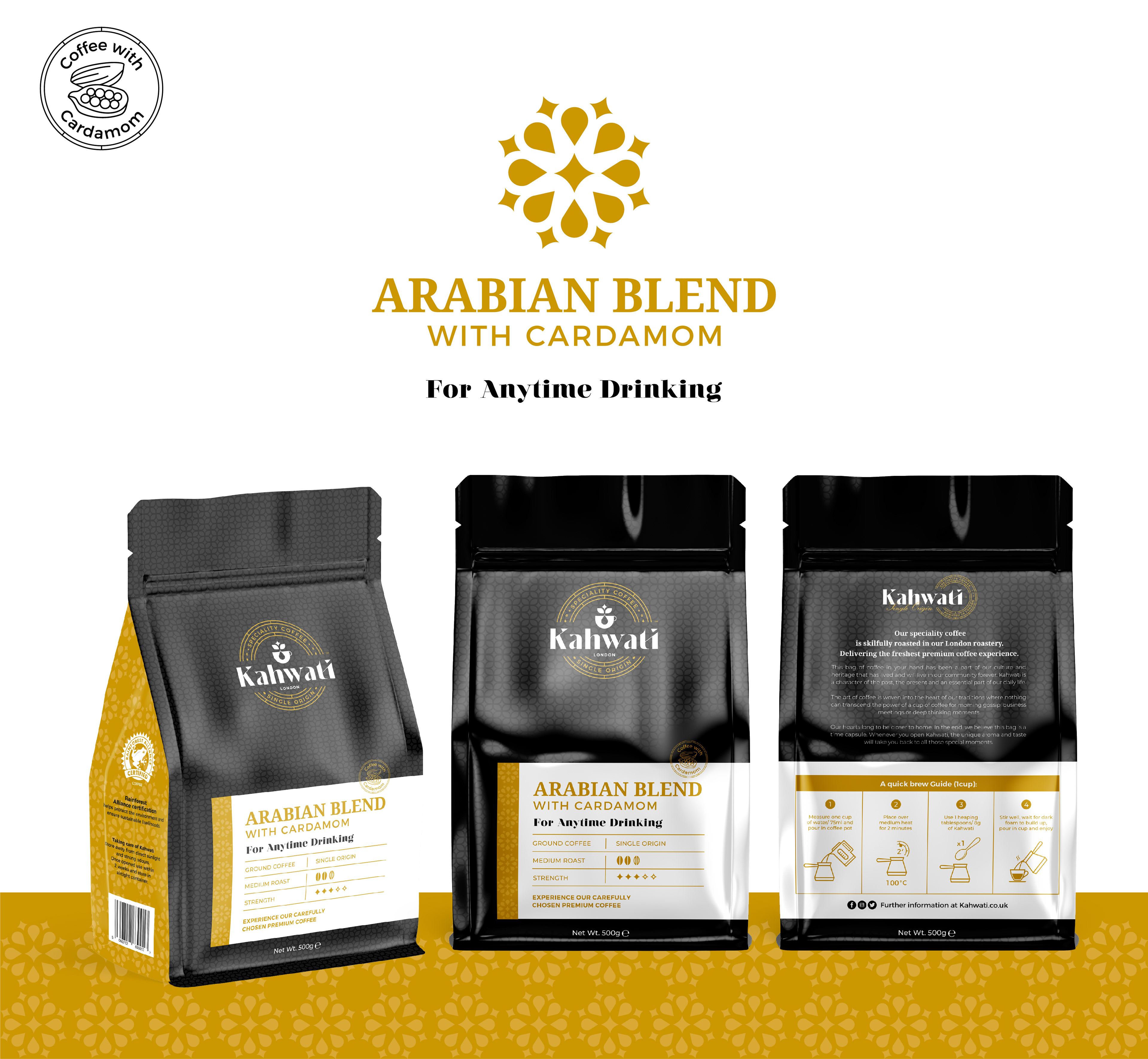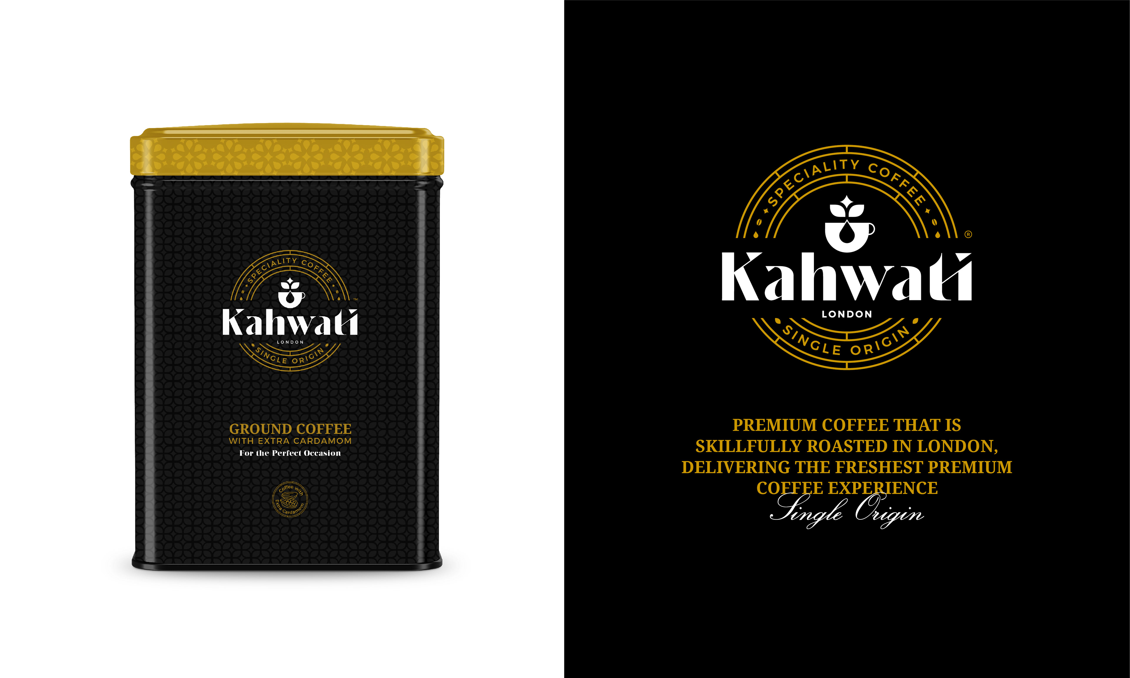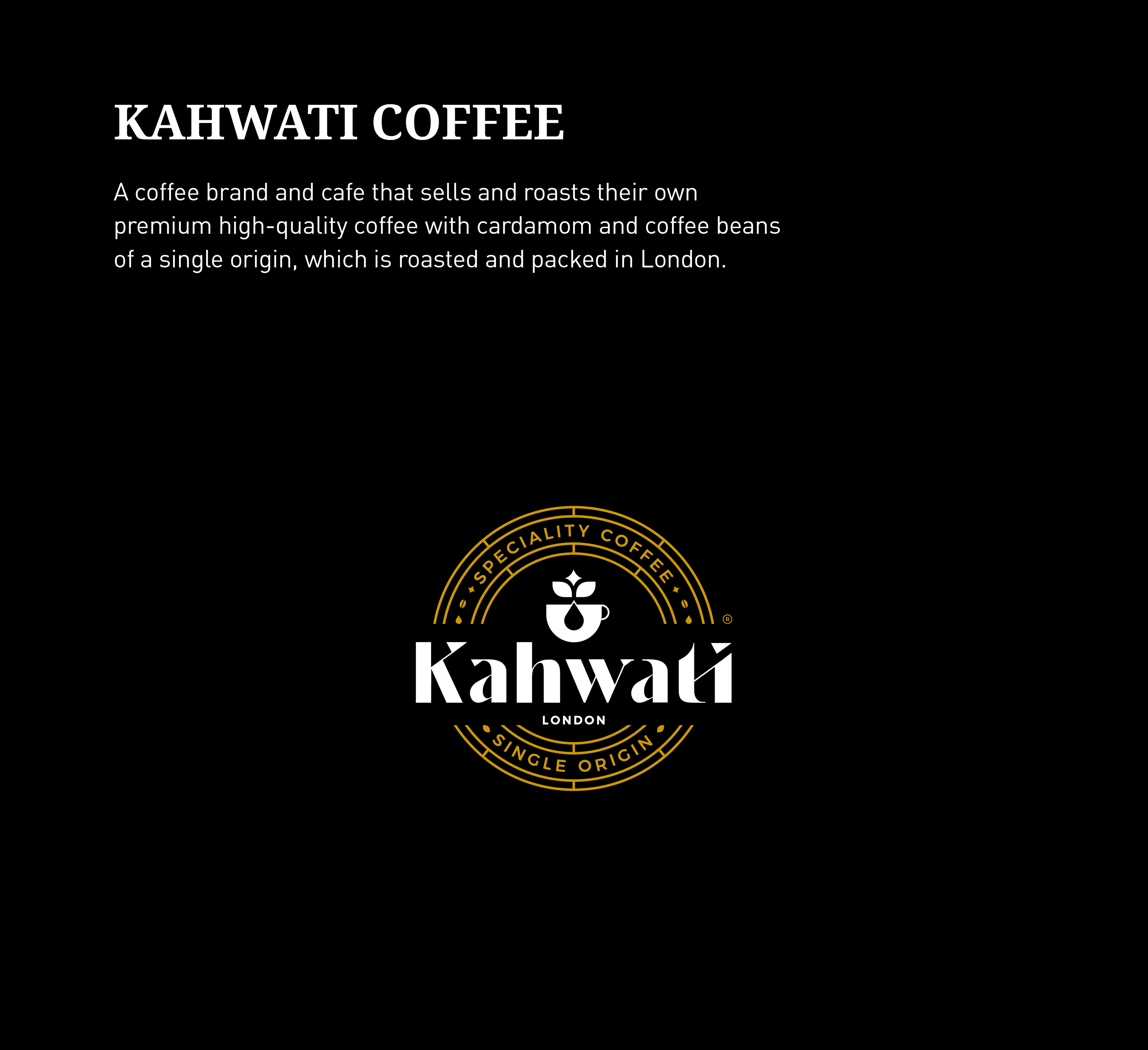 Kahwati is a coffee brand and cafe that sells and roasts its own premium high-quality coffee with cardamom and coffee beans of a single origin, which is roasted and packed in London.