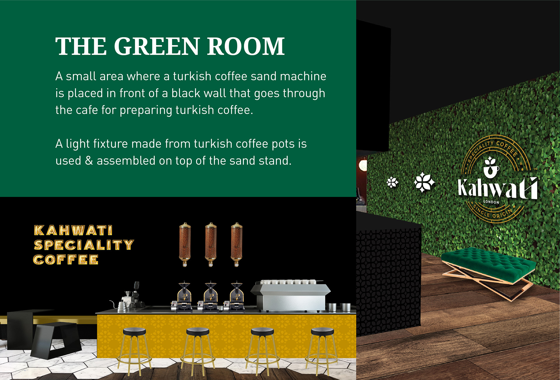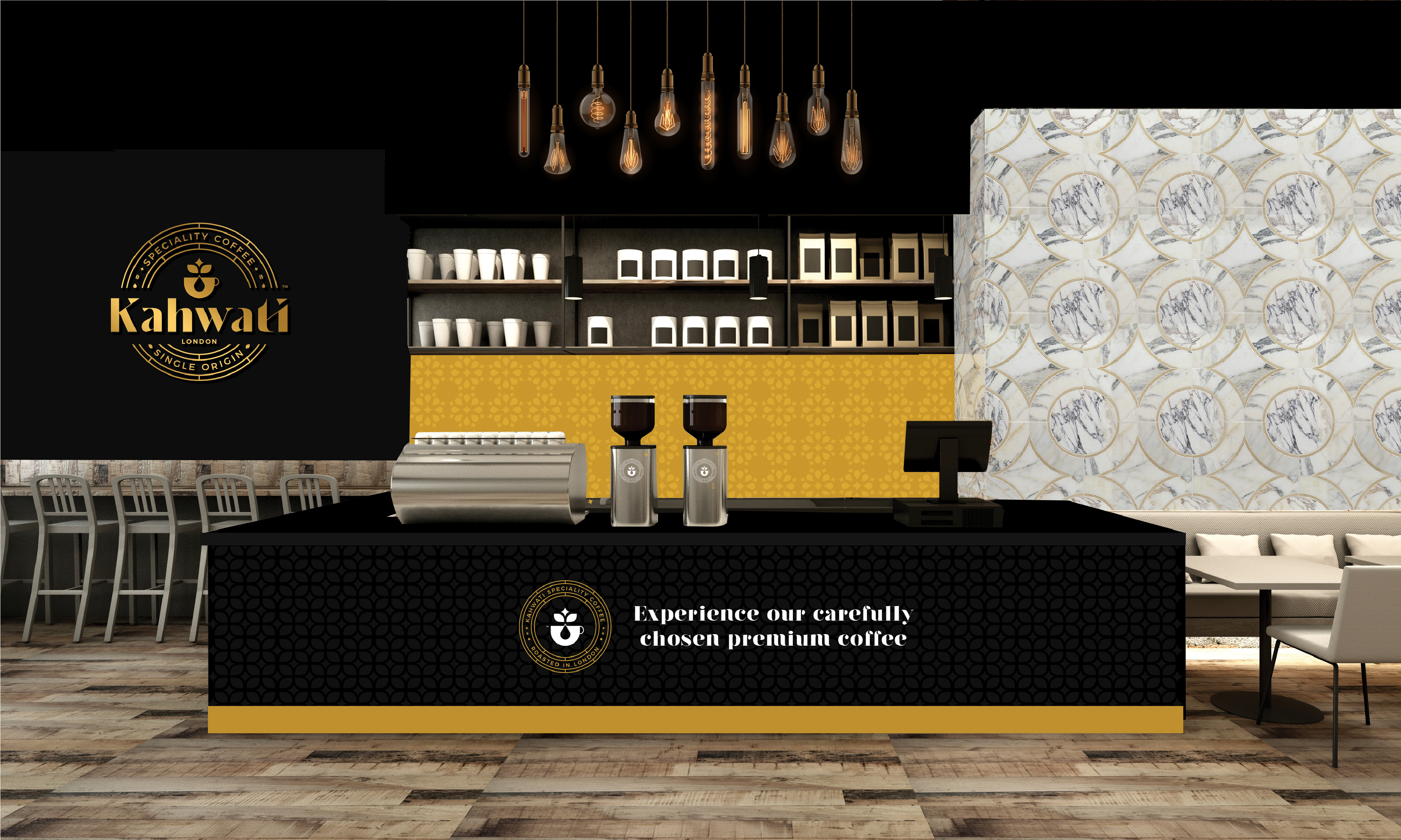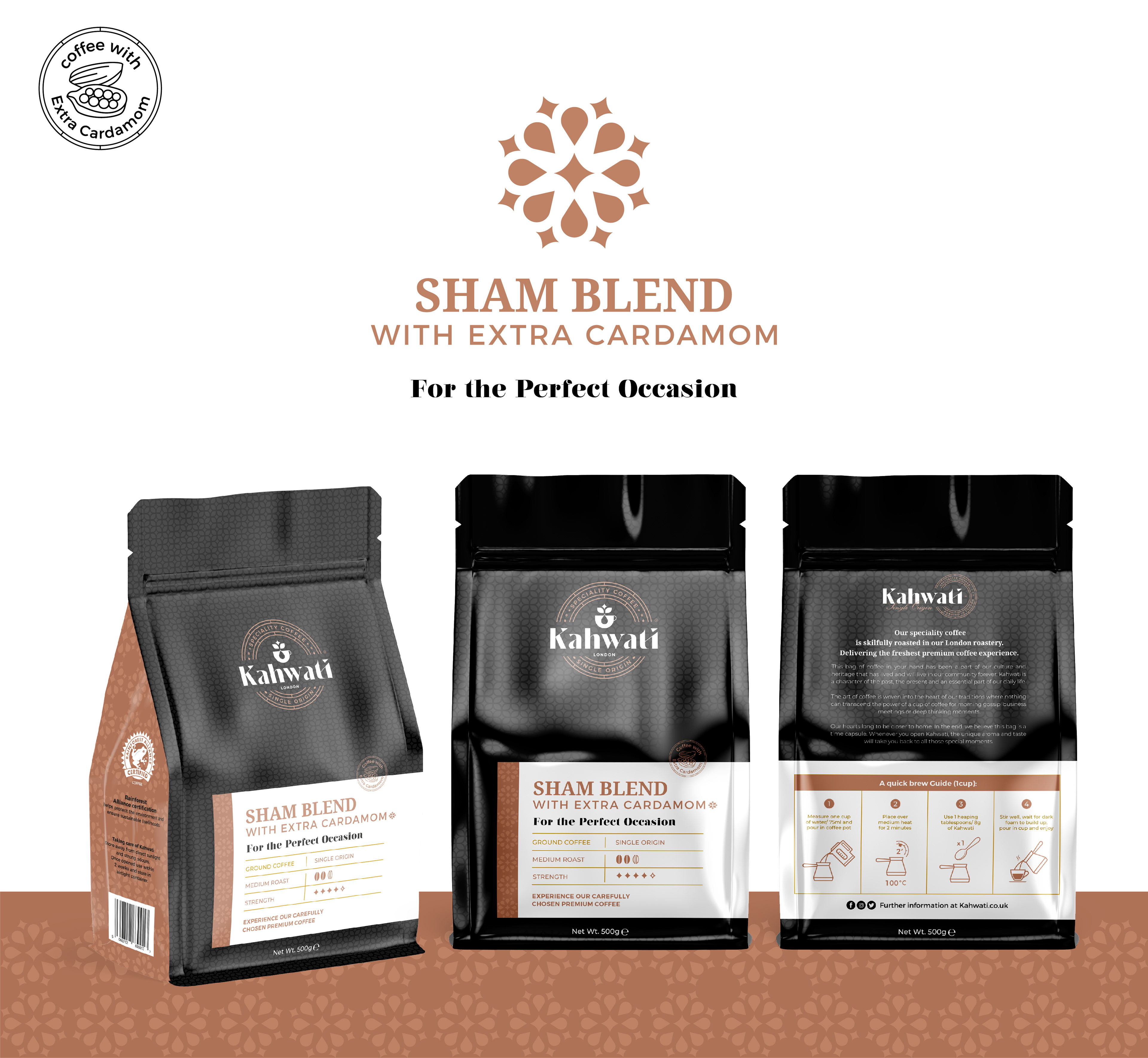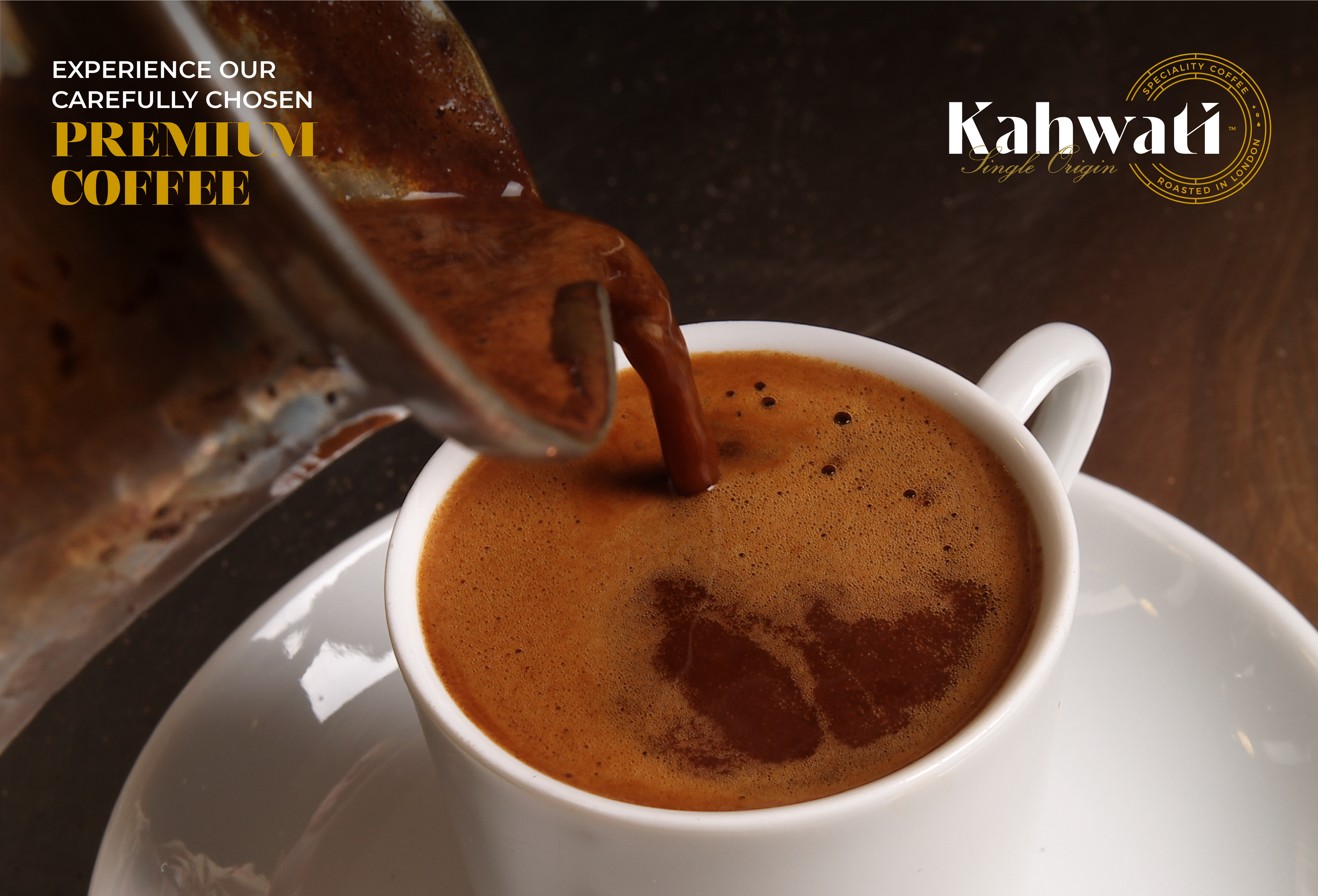 Kahwati is a coffee brand and cafe that sells and roasts its own premium high-quality coffee with cardamom and coffee beans of a single origin, which is roasted and packed in London.